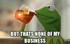 CB: Itβs not really a joke, but I really like the meme of Kermit the Frog sipping tea and saying βbut thatβs none of my businessβ after saying something sassy.