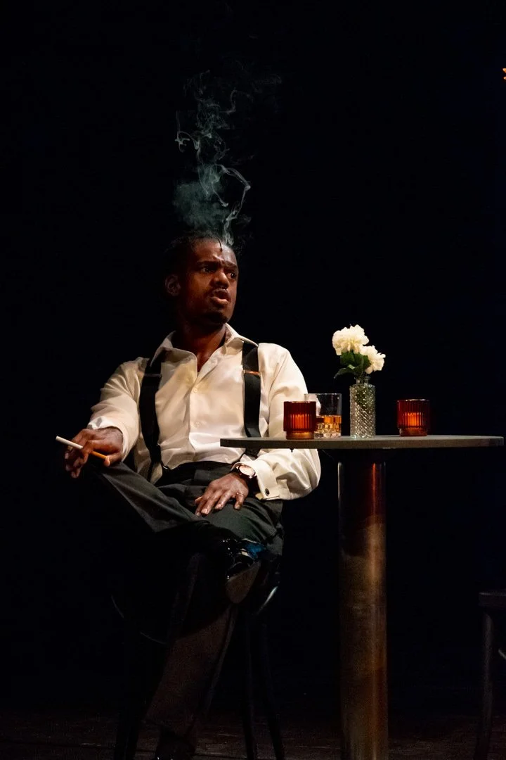 Early in Act 2 we get a mini-satire of life at the elegant (which is to say, white) Waldorf Hotel. “Lounging at the Waldorf” comically implies that white people lounge while Black people serve. Smith then does a number that intentionally reinforces white prejudices about Black people (as druggies and layabouts): the hard-to-overdo “The Viper’s Drag,” accompanied by lots of puffing on an artificial reefer. And then we continue the series of mini-drama songs, so skillfully wrought, sung and acted: Corasha Dent with the poignant “Mean to Me” — to the back of a silent, surly man (Nelson) clearly no longer interested in her and not sorry about it; Nelson, having amazingly transformed into a drunken, comic, insulting buffoon, with “Your Feet’s Too Big”; Smith and ShaaNi Dent with the solemn “That Ain’t Right”; Windham with “Keepin’ Out of Mischief Now.”