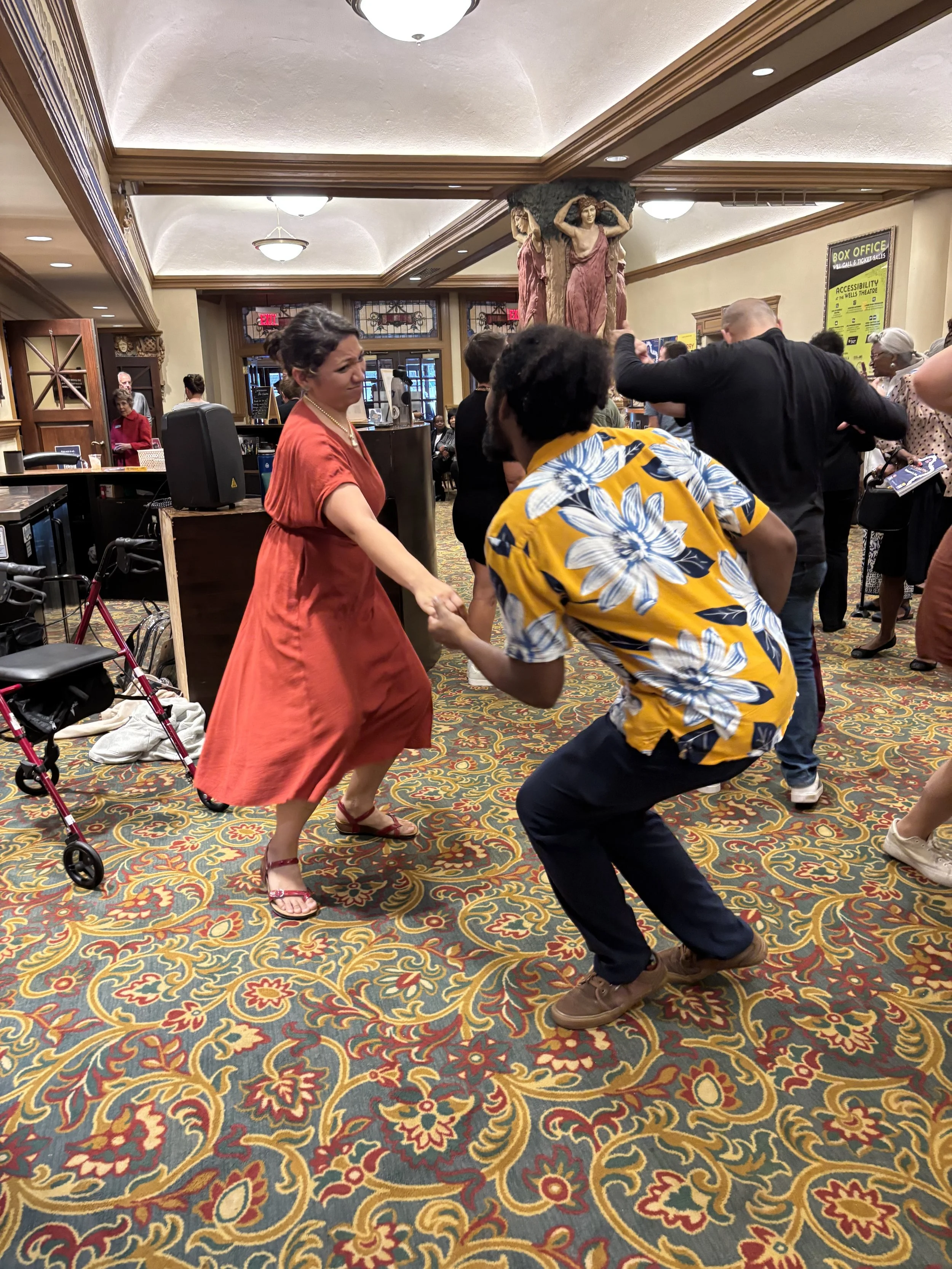 Things started with a brief pre-show lesson that went over basic swing steps and continued after the afternoonβs performance of Ainβt Misbehavinβ, with our Joint is Jumping Lobby Dance Party. All were welcome and encouraged to join.