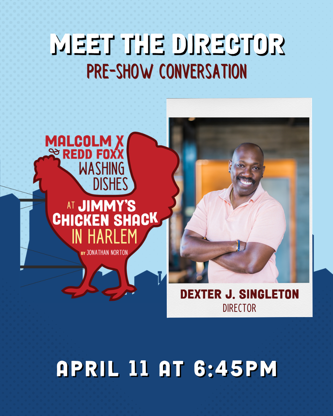This Saturday, join us for a special Meet the Director talkback with Dexter J. Singleton, the director of Malcolm X and Redd Foxx Washing Dishes at Jimmy’s Chicken Shack in Harlem.