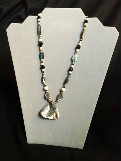 Create a stunning look with the beautiful, hand-crafted Abalone necklace by local Artist Bonnie Kiermaier. [Item #68]